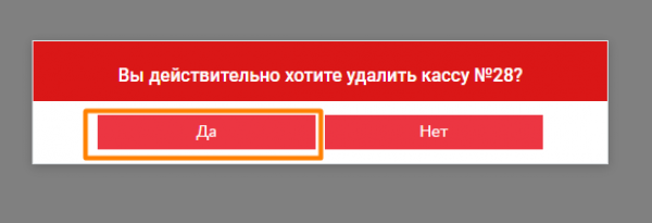 Для того, чтобы удалить кассу, в окне подтверждения удаления кассы нажмите Да.