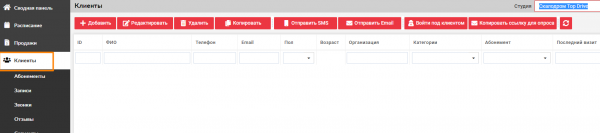 В разделе Клиенты отображается информация обо всех клиентах, посещавших вашу студию. В списке клиентов выводится основная информация о клиенте.