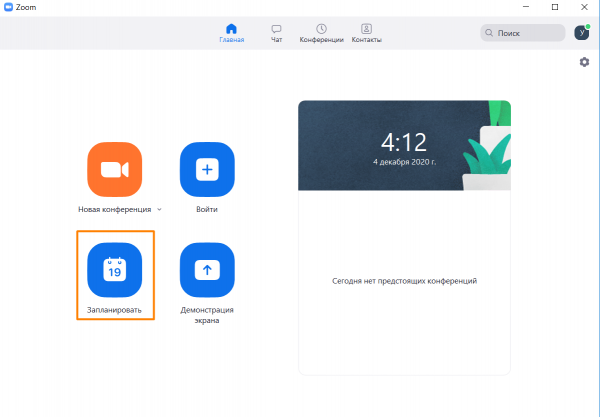 В системе можно проводить онлайн тренировки с помощью приложения Zoom для видеосвязи. Скачайте приложение на устройство ,с которого будете вести онлайн тренировку. В меню приложения нажмите Запланировать