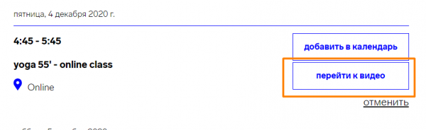 За 10 минут до начала тренировки в личном кабинете клиента рядом с онлайн-тренировкой появится кнопка перейти к видео