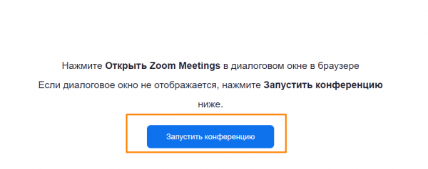 После нажатия на кнопку вы автоматически перейдете на сайт Zoom, далее нажмите Запустить конференцию и вы будете подключены к онлайн-тренировке.