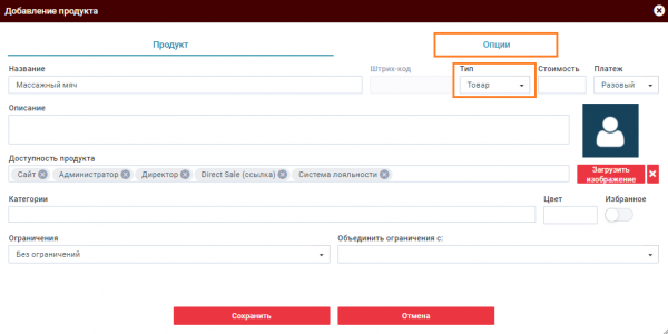 4.Выберите доступность продукта. Например для администратора и директора системы, также можно указать доступность на сайте и по ссылке.